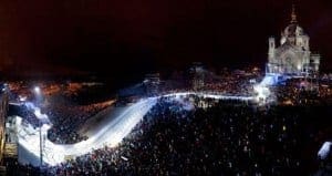 | Aerial of 400-meter-long Red Bull Crashed Ice World Championship course in Saint Paul, MN., where Rigsby and some 200 others competed. |